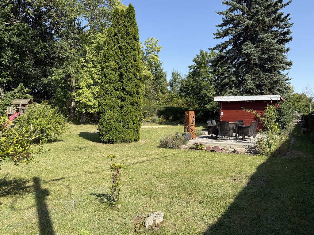 Das gesamte Anwesen wird durch die großzügige Grundstücksfläche von 5.000 m² zu einem echten Highlight. Es erwartet Sie ein gepflegter Garten mit mehreren gemütlichen Sitzecken, darunter auch überdachte Bereiche, die zum Entspannen und Verweilen einladen. Große Wiesenflächen bieten ausreichend Platz für Kinder, Haustiere oder zum Gärtnern. Ein Gartenhaus sowie ein Gehege für Hühner und Minischweine bereichern das Anwesen zusätzlich und verleihen ihm einen besonderen Charme.