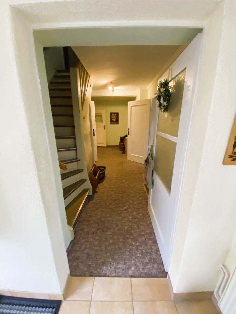 Durch einen kleinen Windfang gelangt man ins Erdgeschoss der Immobilie und damit zum gemütlichen Wohnzimmer, Esszimmer, zur geräumigen Küche sowie zum gefliesten Badezimmer, welches mit einer Wanne ausgestattet ist. Ein Flur verbindet die Räume und schafft Bewegungsfreiheit.
