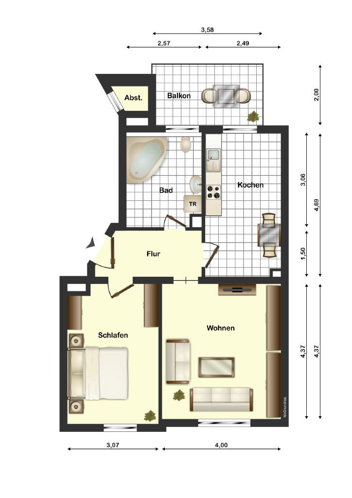 • Wohnfläche: 59 m²